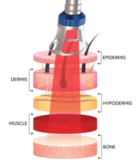 Once laser light touches the skin, photons (light particles) penetrate underlying tissue and our cells absorb the light’s energy. This results in an increased production of a molecule called ATP (adenosine triphosphate)